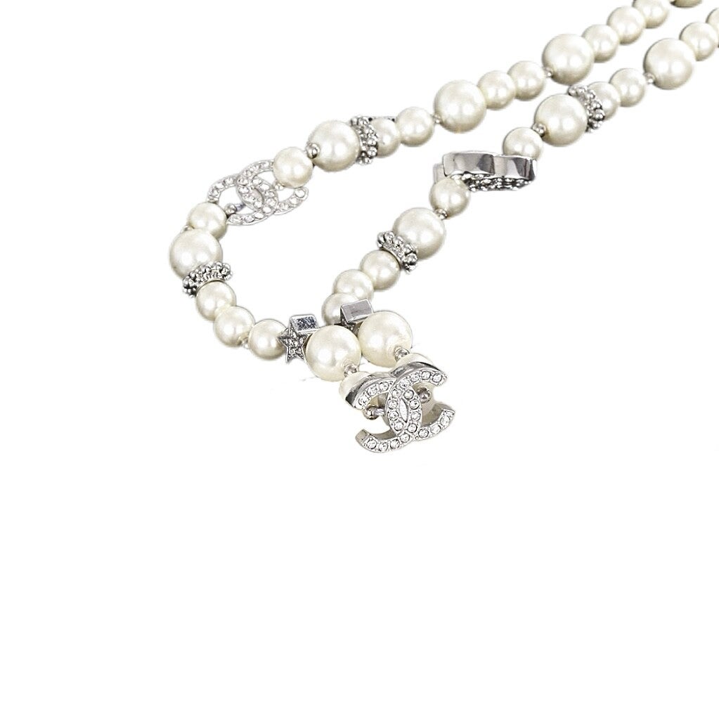 A timeless masterpiece from Chanel’s fine jewelry collection. Lustrous cultured pearls are delicately graduated and hand-knotted, punctuated by three signature camellia flowers meticulously crafted in 18K white gold and pavé-set with brilliant-cut diamonds. The iconic CC logo clasp adds the final touch of understated grandeur—effortlessly worn long, doubled, or layered for endless elegance.