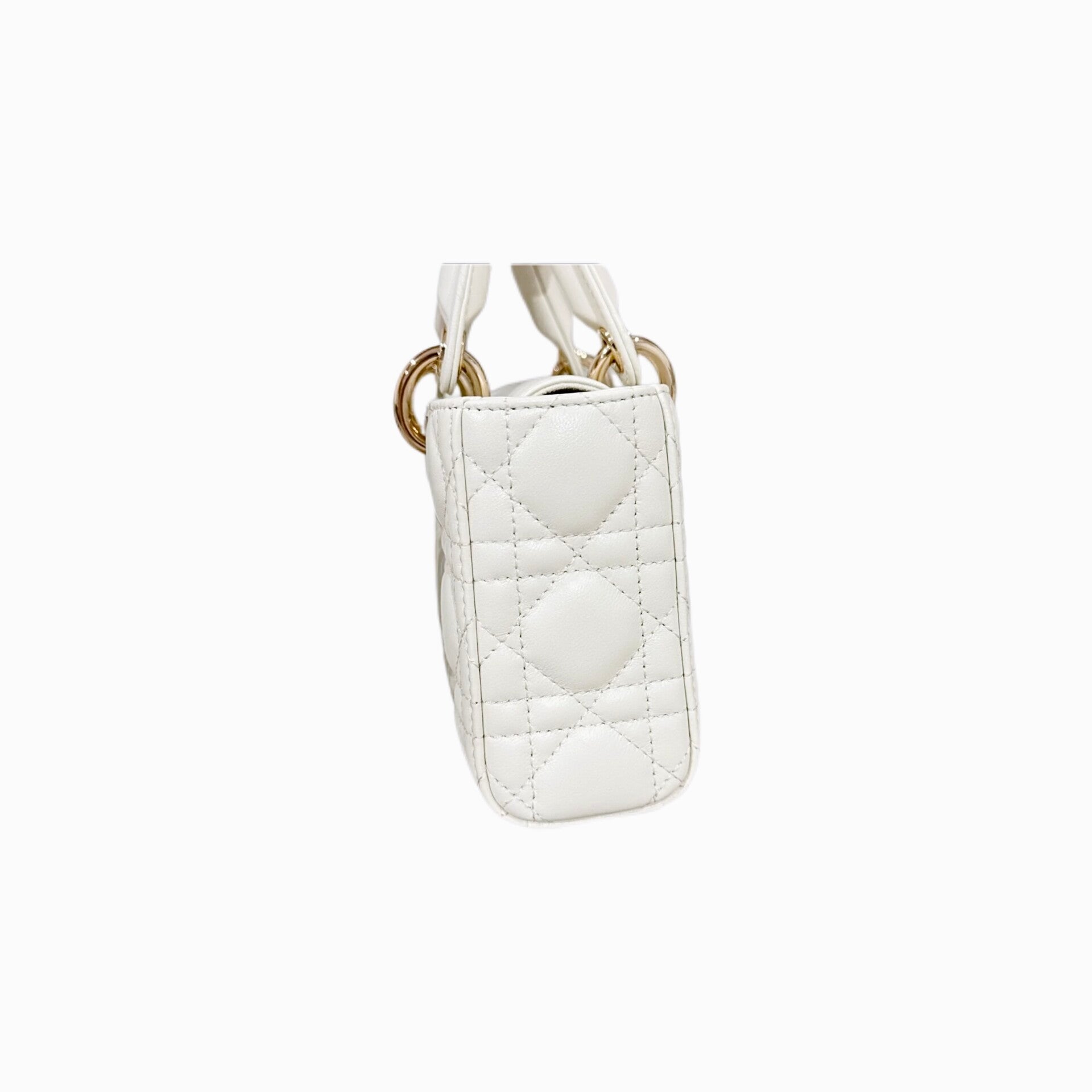 DIOR Small Lady D-Joy Bag in White Lambskin
