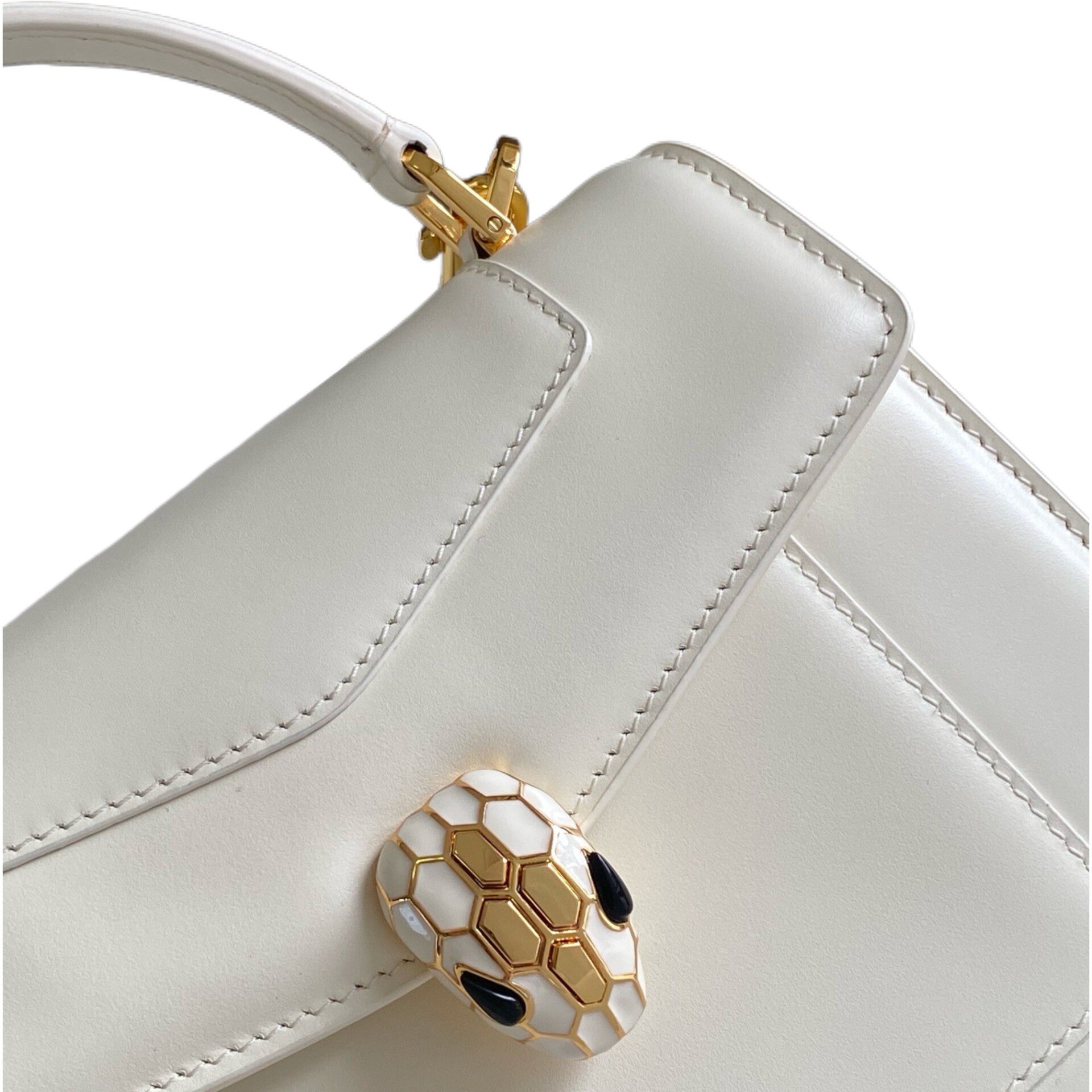 • Features the iconic snakehead magnetic closure in gold-plated brass with pink enamel and black onyx eyes