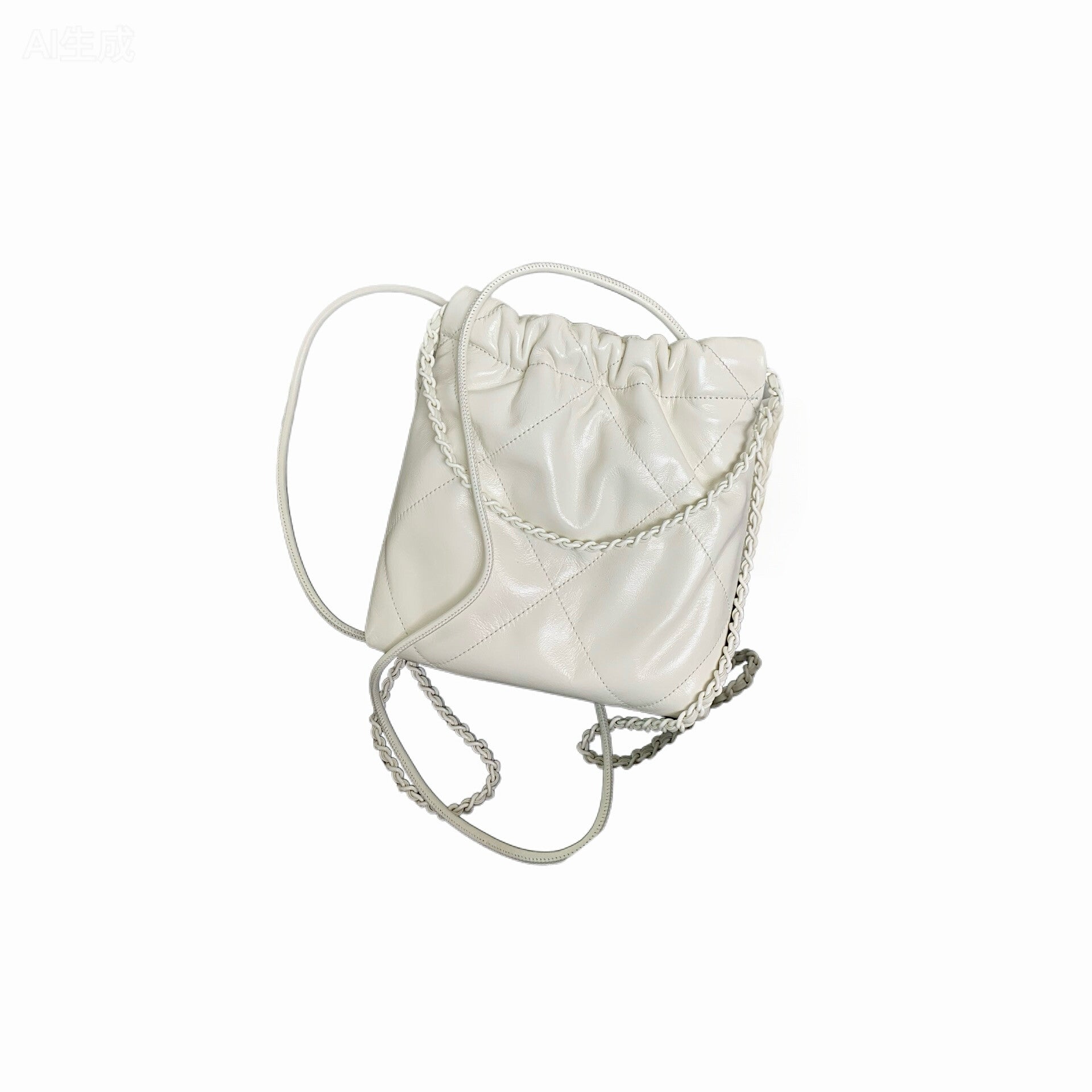 This anticipated drawstring bag, a reinterpretation of the iconic CHANEL 22 silhouette, is crafted from supple leather and features distinctive quilting. It is characterized by its versatile design, offering multiple carrying options from hand-carry to crossbody or backpack style, ensuring both style and practicality.