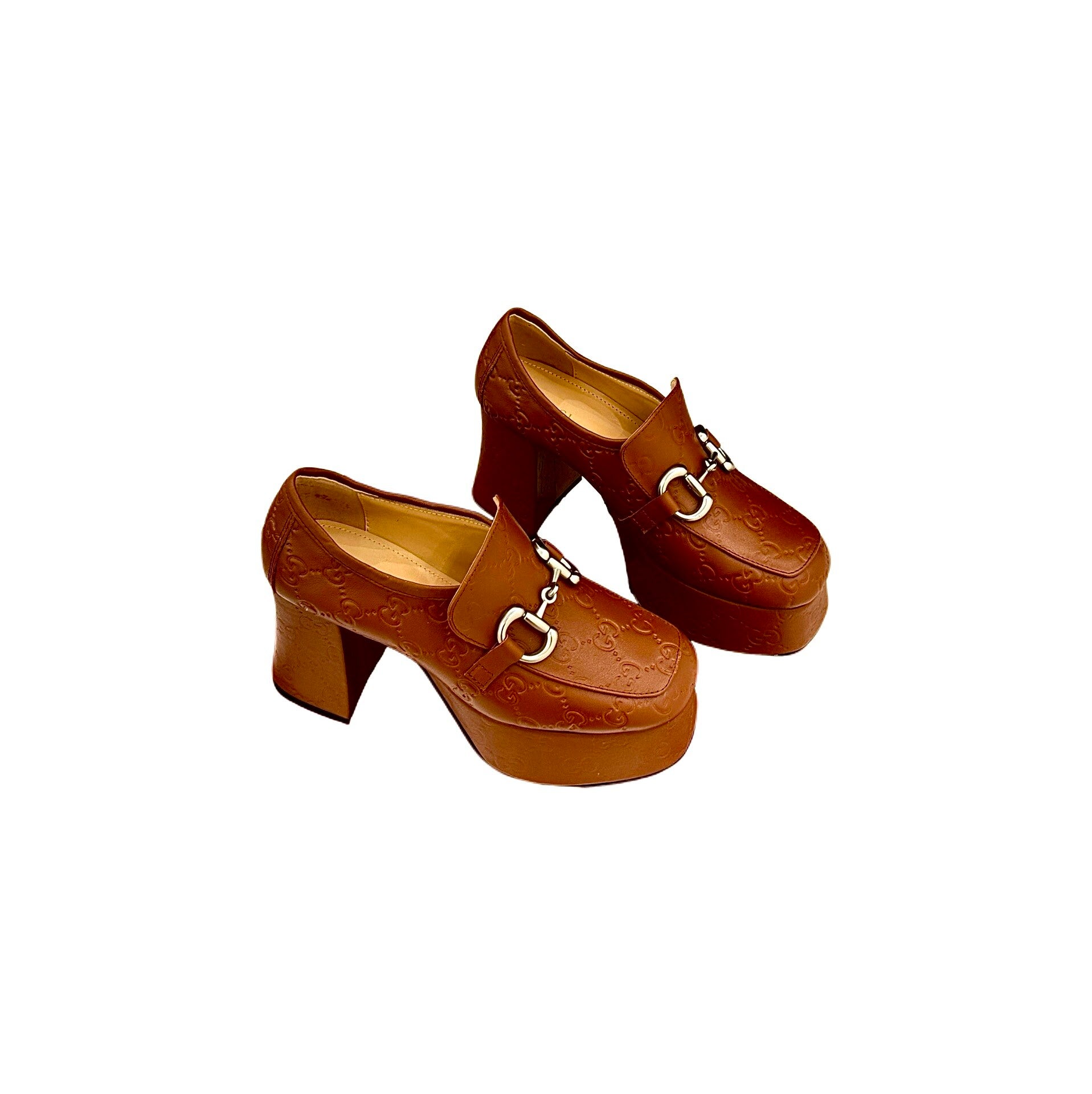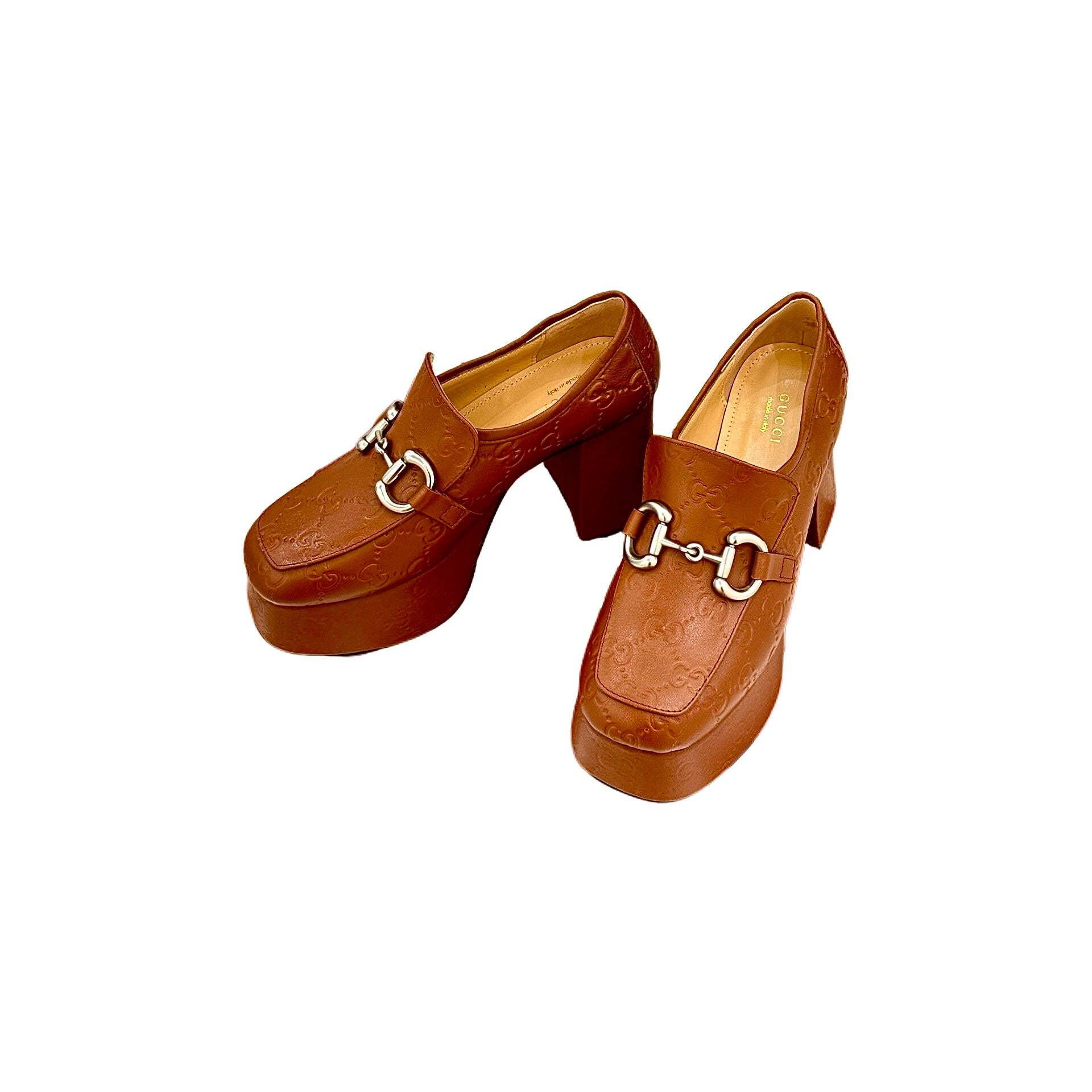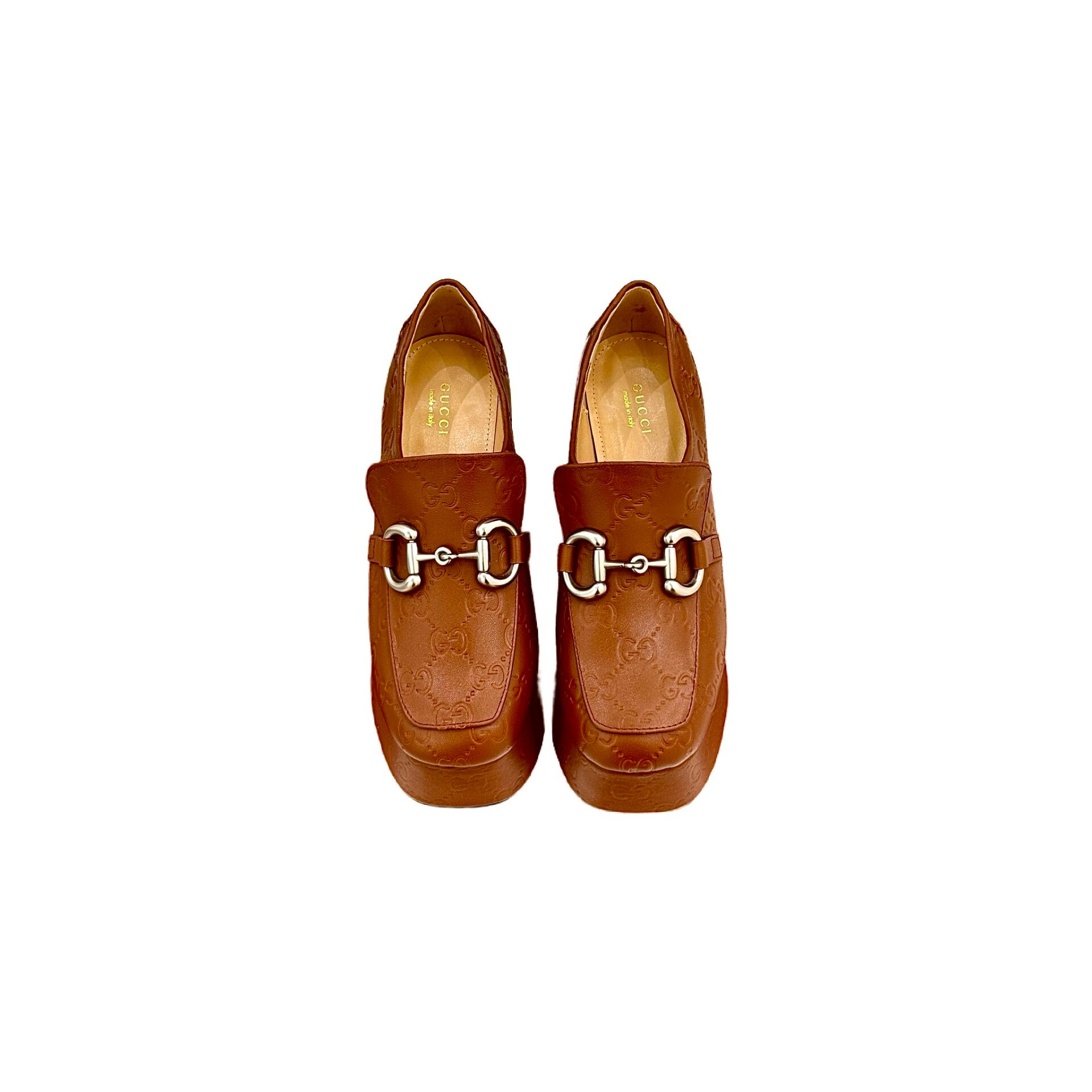 GUCCI Horsebit Platform Loafer Marrone Cuoio