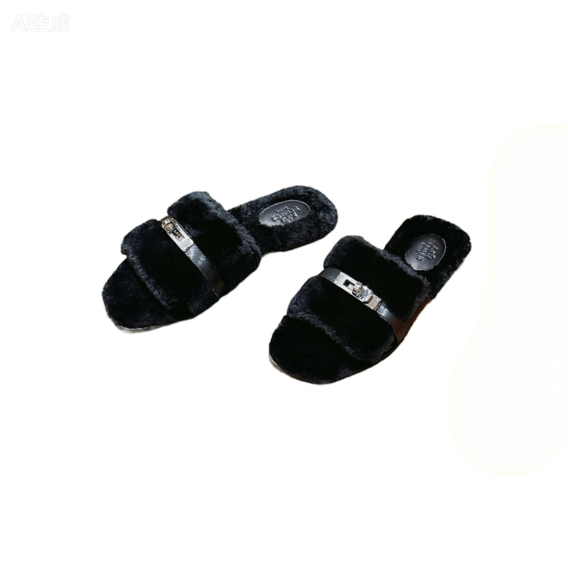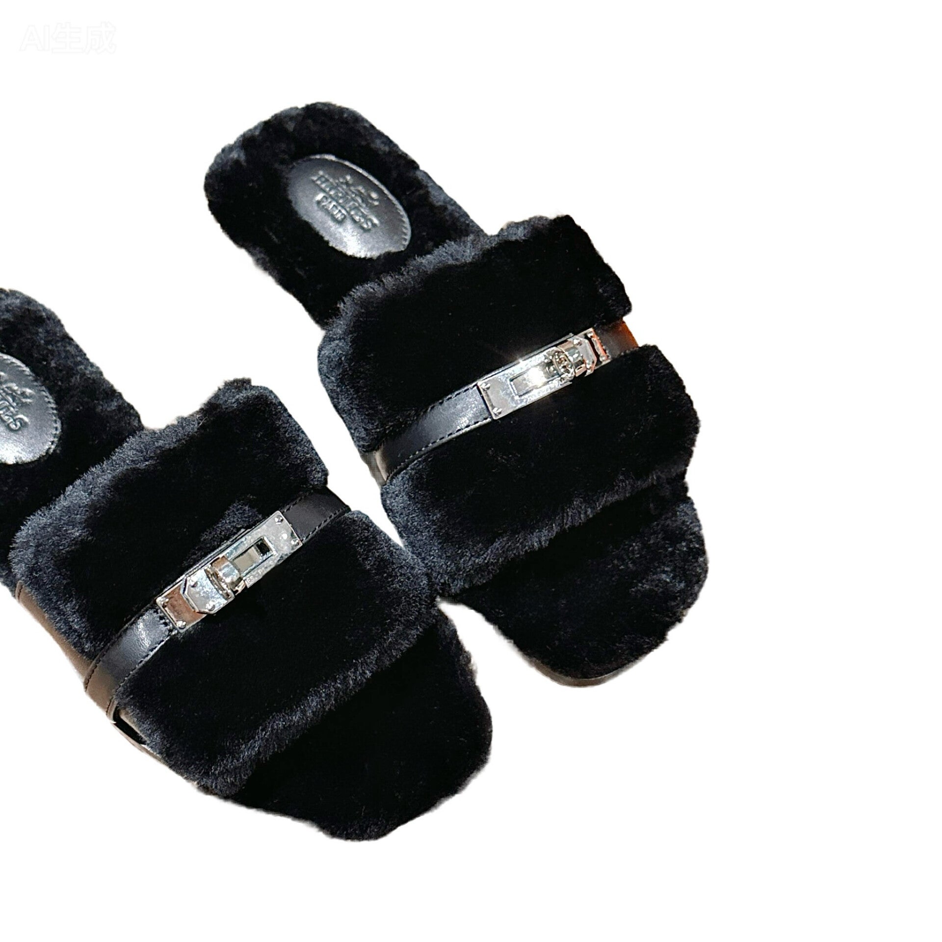 HERMÈS Kelly Buckle Shearling Slipper