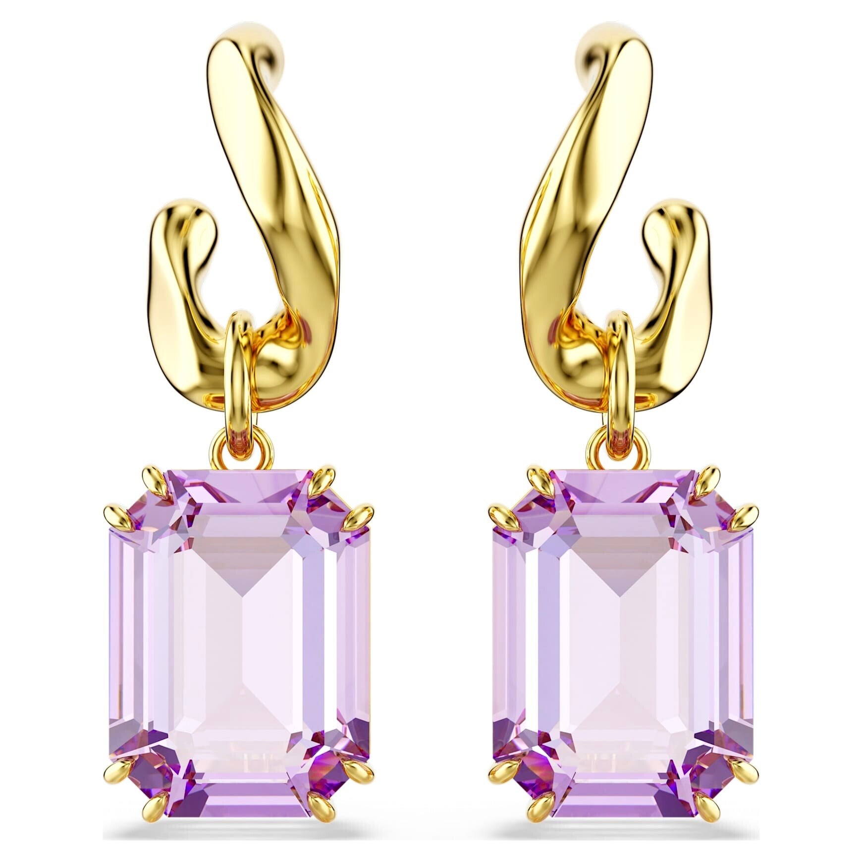 Accentuate the sparkle with these mesmerizing SWAROVSKI Millenia Drop Earrings in a captivating purple hue. Each gold-tone plated piece features an open link structure to which a claw-set crystal is fixed, crafted in Swarovski's signature octagon shape. These earrings are designed to deliver a striking effect. Maximize their brilliance by pairing them with a matching Millenia pendant or bracelet.