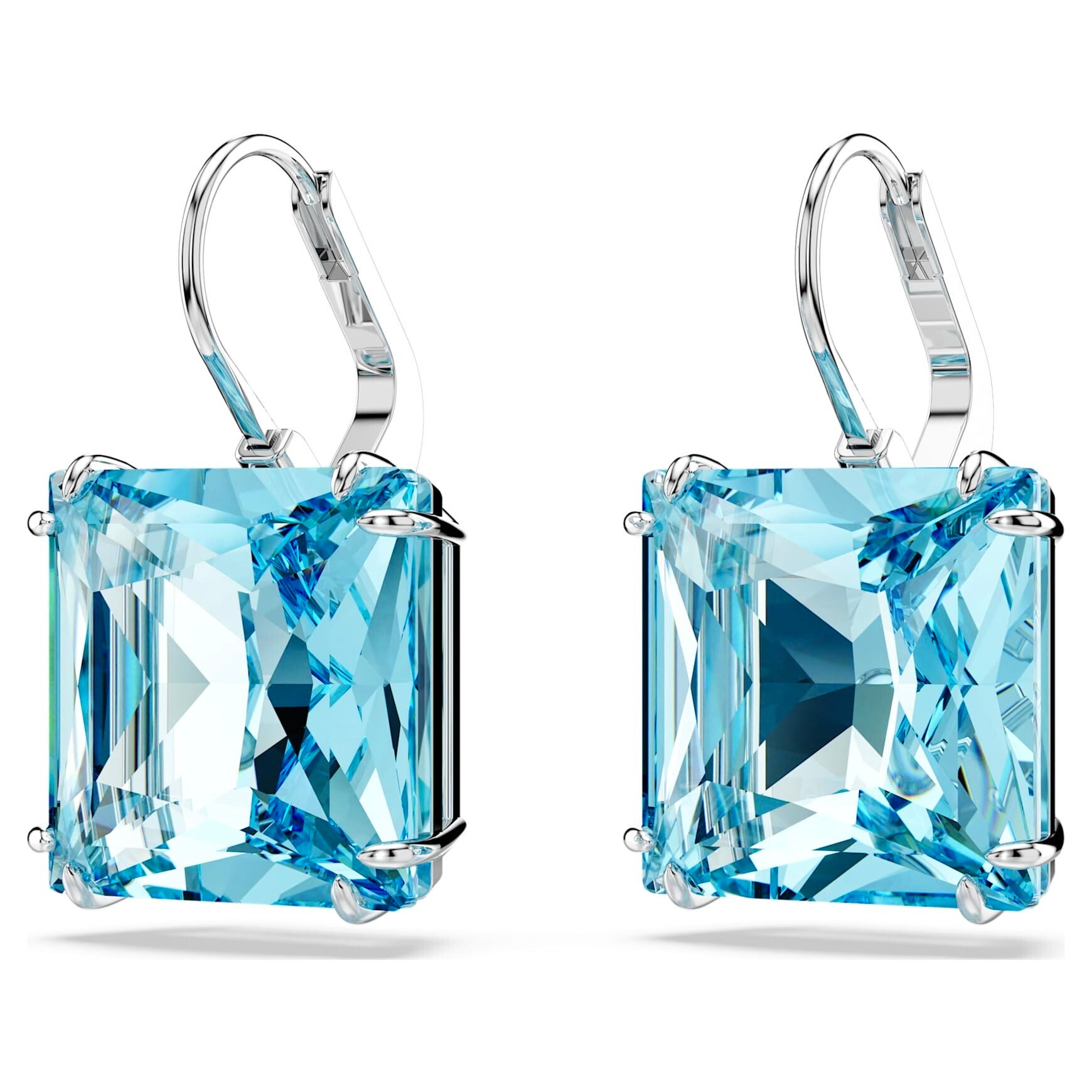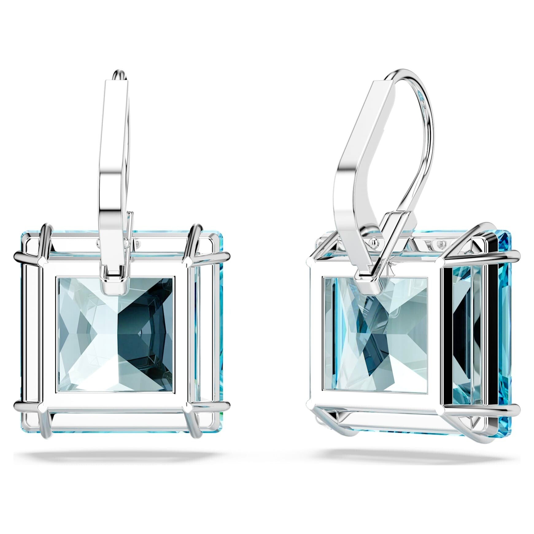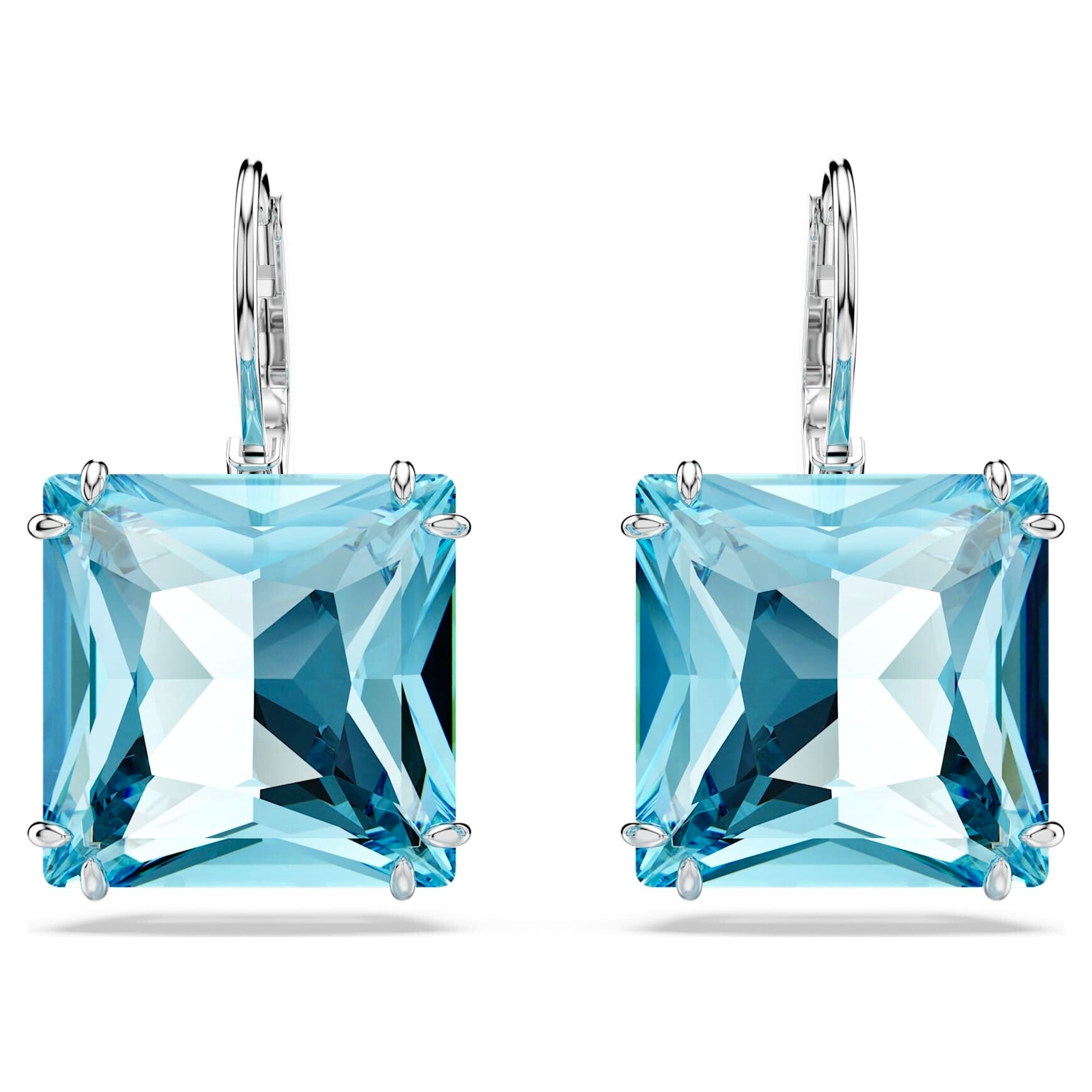 Bold yet refined, these pierced earrings are a timeless everyday choice. This elegant pair features square-cut crystals in a soothing blue shade, set on a sleek rhodium-plated mounting. Wear them with anything from jeans to a suit, allowing you to style them according to all your moods.