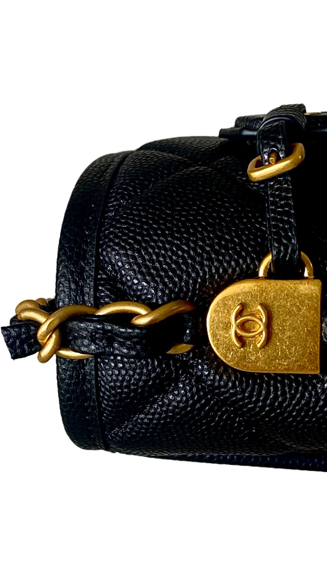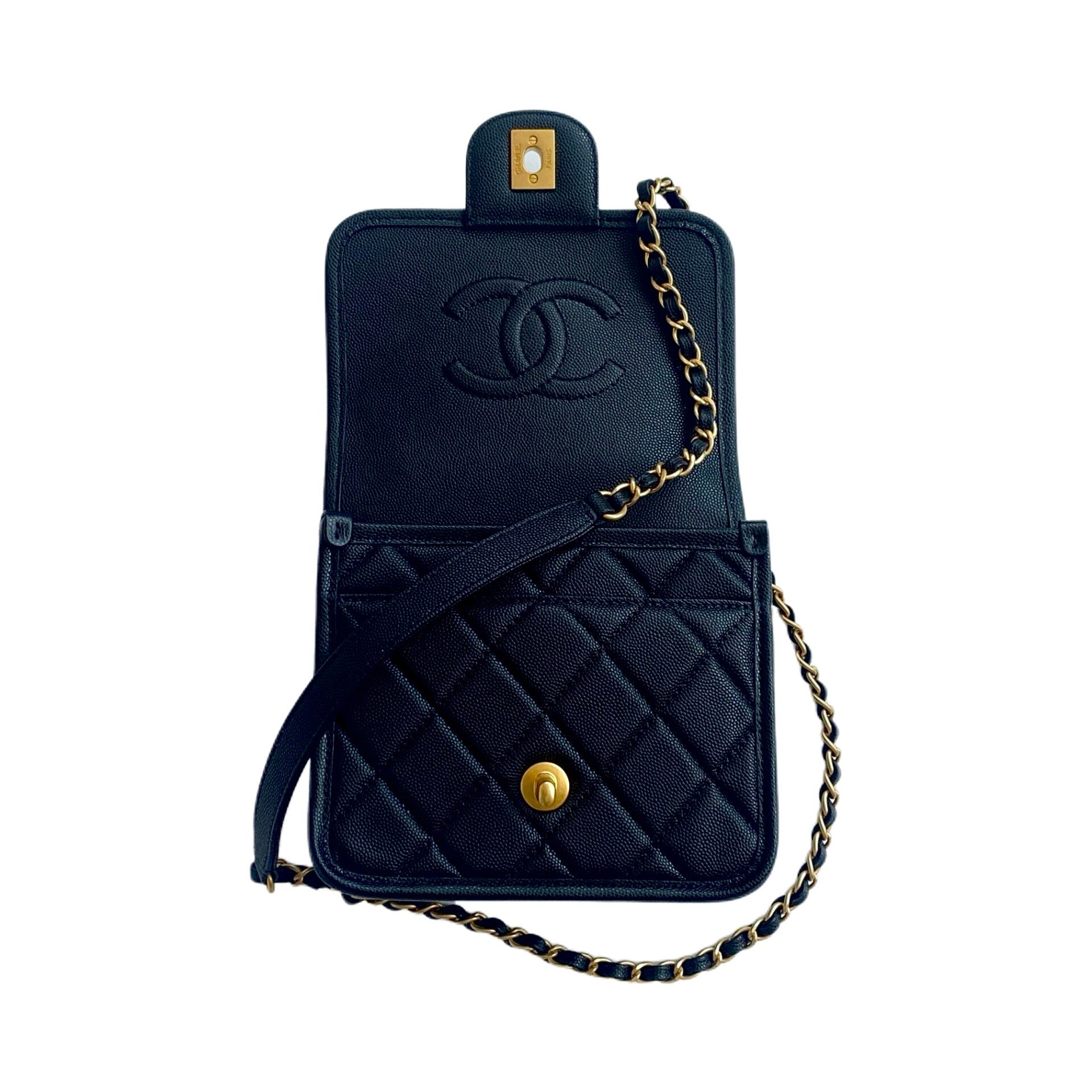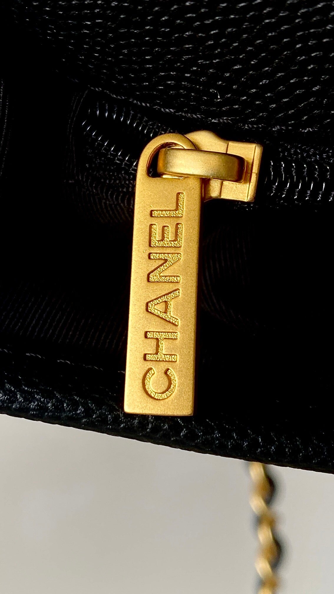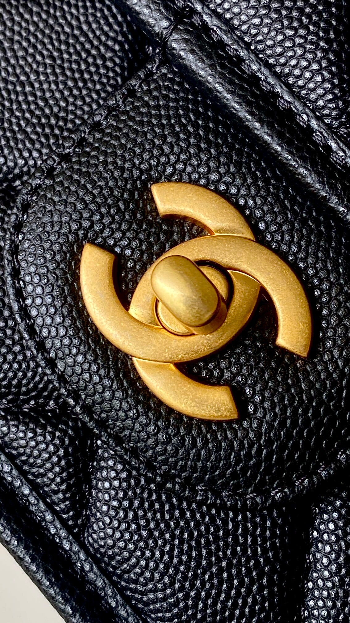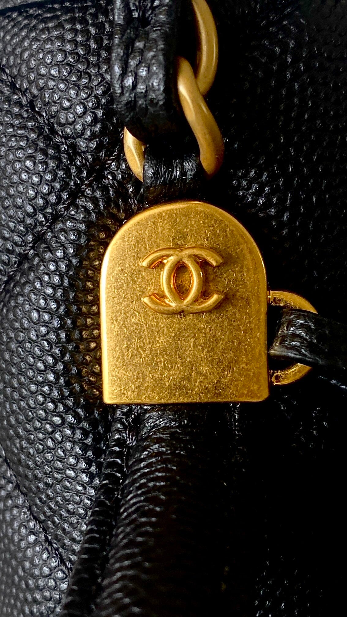 * Features: Top handle, chain-interlaced shoulder strap, and CC turn-lock closure.