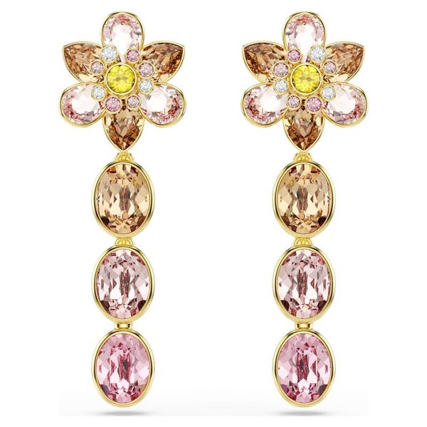 Mixed cuts, Flower, Multicolored, Gold-tone plated